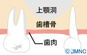 歯を失うと歯槽骨が吸収するので、上顎では上顎洞側と歯槽骨側から骨吸収が進行することが少なくありません。